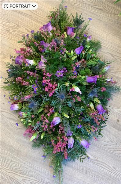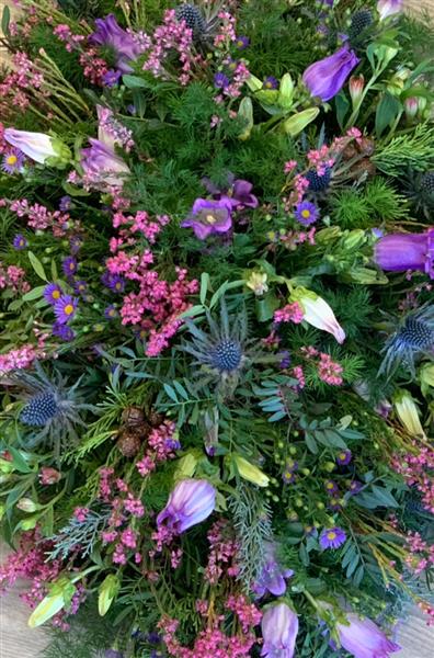Beautiful casket spray in your choice of colours. Includes roses, carnations and lisianthus. Standard price is for a 3ft spray.