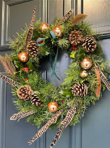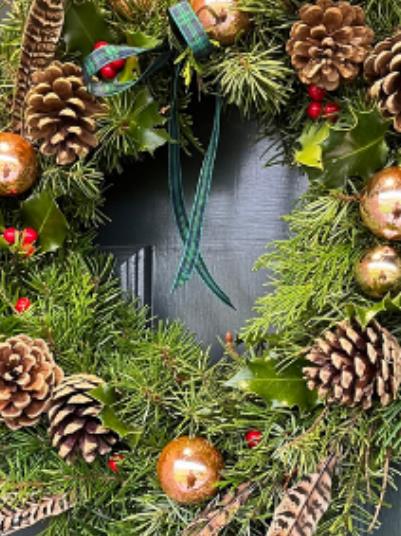 A timeless wreath of natural beauty, bringing warmth with evergreens and rustic charm - a gentle nod to natures quiet grace.